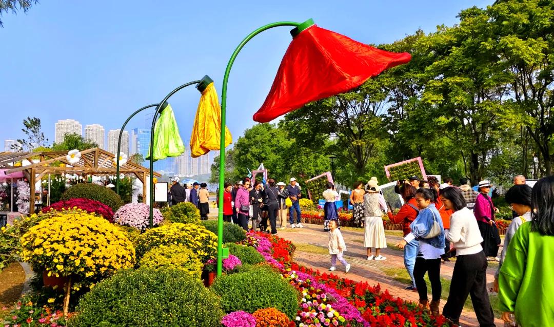 在“鏡中菊影”景觀區(qū),游客踏入“天空之境”,恍若步入鏡花水月之境,與濱湖風(fēng)光相映成趣。